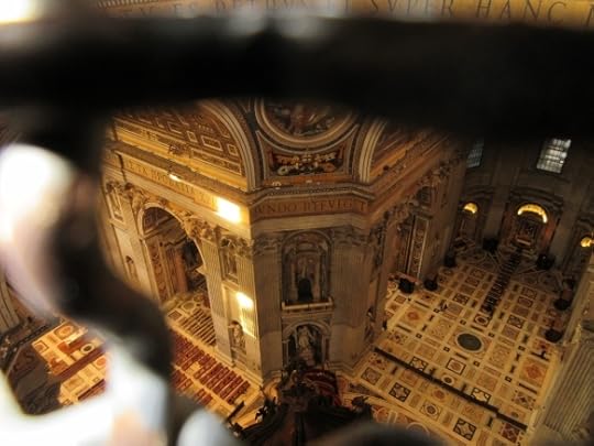 I revisited St. Peter's Basilica to get some better photos today. The light was a bit dark previously. Here is a view from the dome looking down into the church. The highlight of the trip! The brown object at the bottom is the top of the baldachin directly beneath the dome of the basilica. Underneath the baldachin is the entry to St. Peter's tomb and the grottoes. This scene was used in Dan Brown's Angels & Demons, though the movie scene itself was digitally recreated with a full 360 degree green screen.