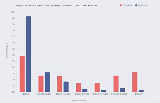 Regardless, creators overall need a new strategy. The income reporting as a whole shows that there is WAY too high a percentage of creators earning $10,000 or less, both male and female. The second highest category is $25,000 or less.