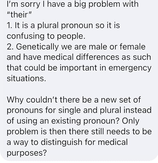 A dear friend of mine commented the following on an image I posted with gender-neutral terms in support of #nonbinarypride.