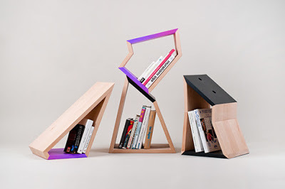 Small bookshelf interpreting the moment when the tree trunk is cut and falls to the ground, transforms a structure that initially looks stiff and essential, in a flexible, mobile and lively piece of furniture composed of four elements that can be stacked and fixed to each others, or used individually.