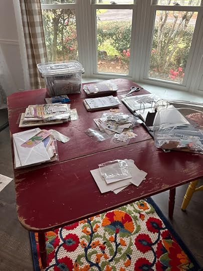 We've been busy moving carloads of things to our house, unpacking them,putting things where they go and going back for more the next day.We are slowly making it look like a home again and the moversare scheduled to move the big stuff on Saturday.