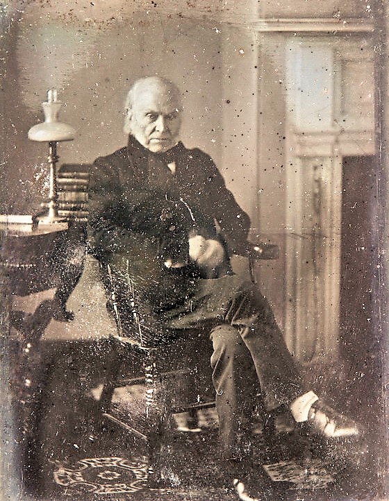 While Polk may have been the first president to be photographed while in office, he was not the first to sit for his portrait. That honor goes to John Quincy Adams, a daguerreotype of whom was shot in March 1843. At the time, Adams was serving in Congress; he was actually a representative from Massachusetts for nearly seventeen years after he left the presidency, overlapping briefly with Lincoln during that future president's one term in Congress.
