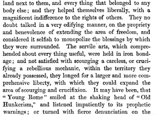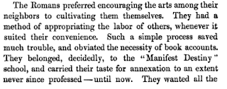 Even earlier, the term was being used to describe one group conquering another. In an address to the Massachusetts Charitable Mechanic Association in 1824, Alphaeus Cary used the term "manifest destiny" to describe the spread of the Roman Empire: