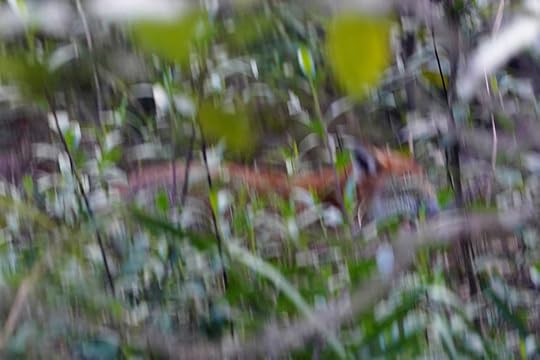 I heard a small sound nearby, and suddenly a fox, bright orange and quite large, appeared and lunged at him.