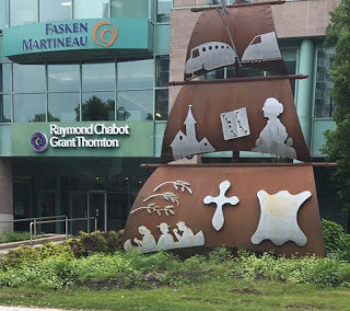 I never noticed the name on the building as we traveled down the wrong street our third day in Quebec. It was the art work depicting Quebec's history that caught my attention. A history Lab I taught at in Minnesota years ago covered the early years of the state and one topic I shared included fur traders and missionaries and how they traveled from Canada through Wisconsin and into Minnesota. In a rush to take a photo of the art before it was out of sight, I didn't realize I had caught the names on the building as well.
