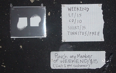 Weekend inspired a lot of reflection from me, particularly around the idea that Weekend take their references for granted – they know their audience will be accustomed to post-punk rhythms, high-volume layers of distortion and long songs that can sometimes appear to lose the plot. They know their audience is along for the ride and, as evidenced by the positive response in Brooklyn, most are game for what would be considered “out there” ten or twenty years ago. Luckily, as evidenced by this shot of their merch table, the band is not taking themselves too seriously, always a good sign. (MB)
