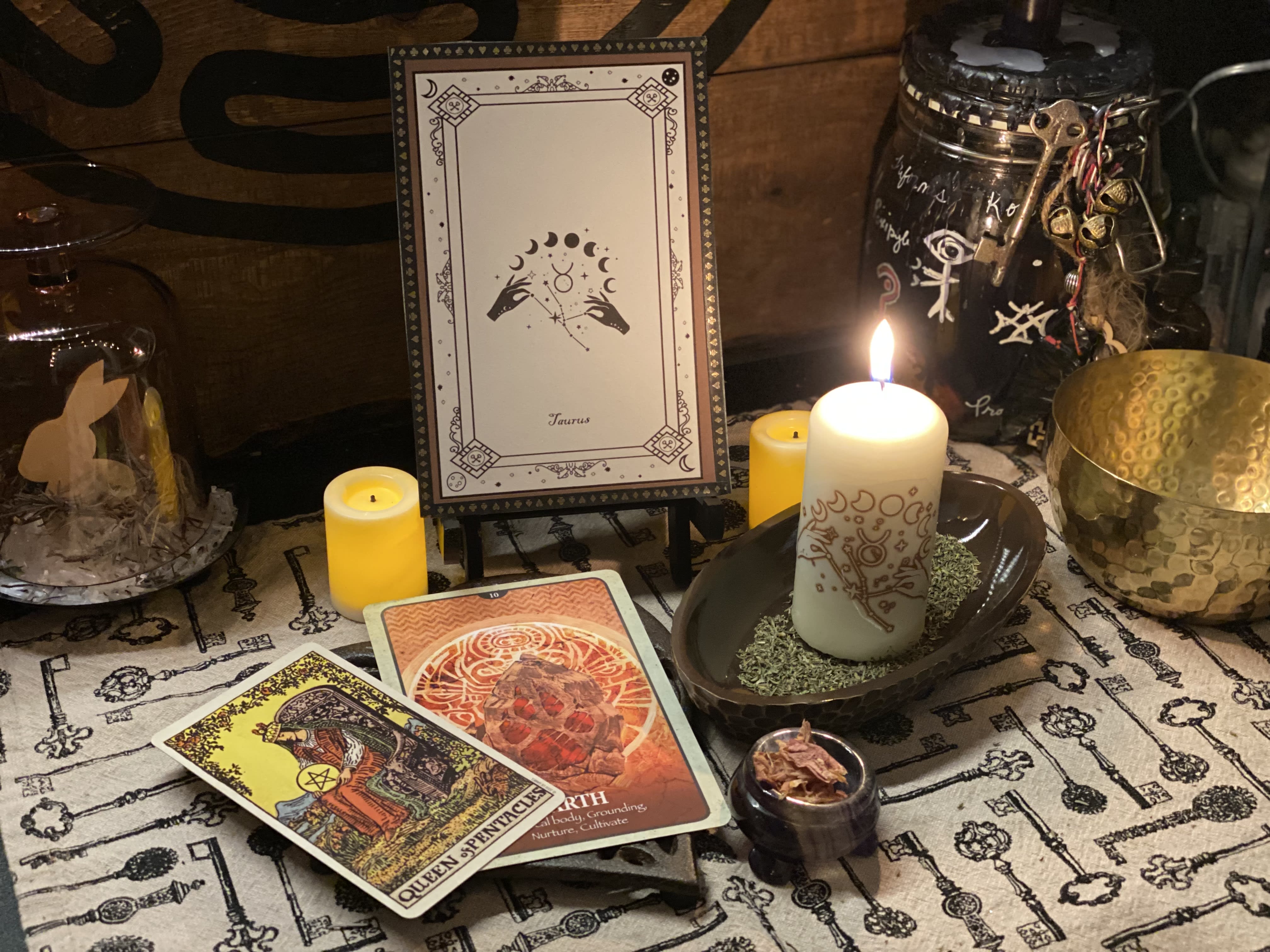 Grounded as they come, Taurus is an ideal companion for all earthy practices, from standing barefoot in the dirt to draw down the moon to doing “root work,” examining what we are carrying in ours, what longs to be sent back to the earth, and what we are manifesting. Work with plants of Taurus, such as rose and oak, to give steadiness and love, as you do this deep work.