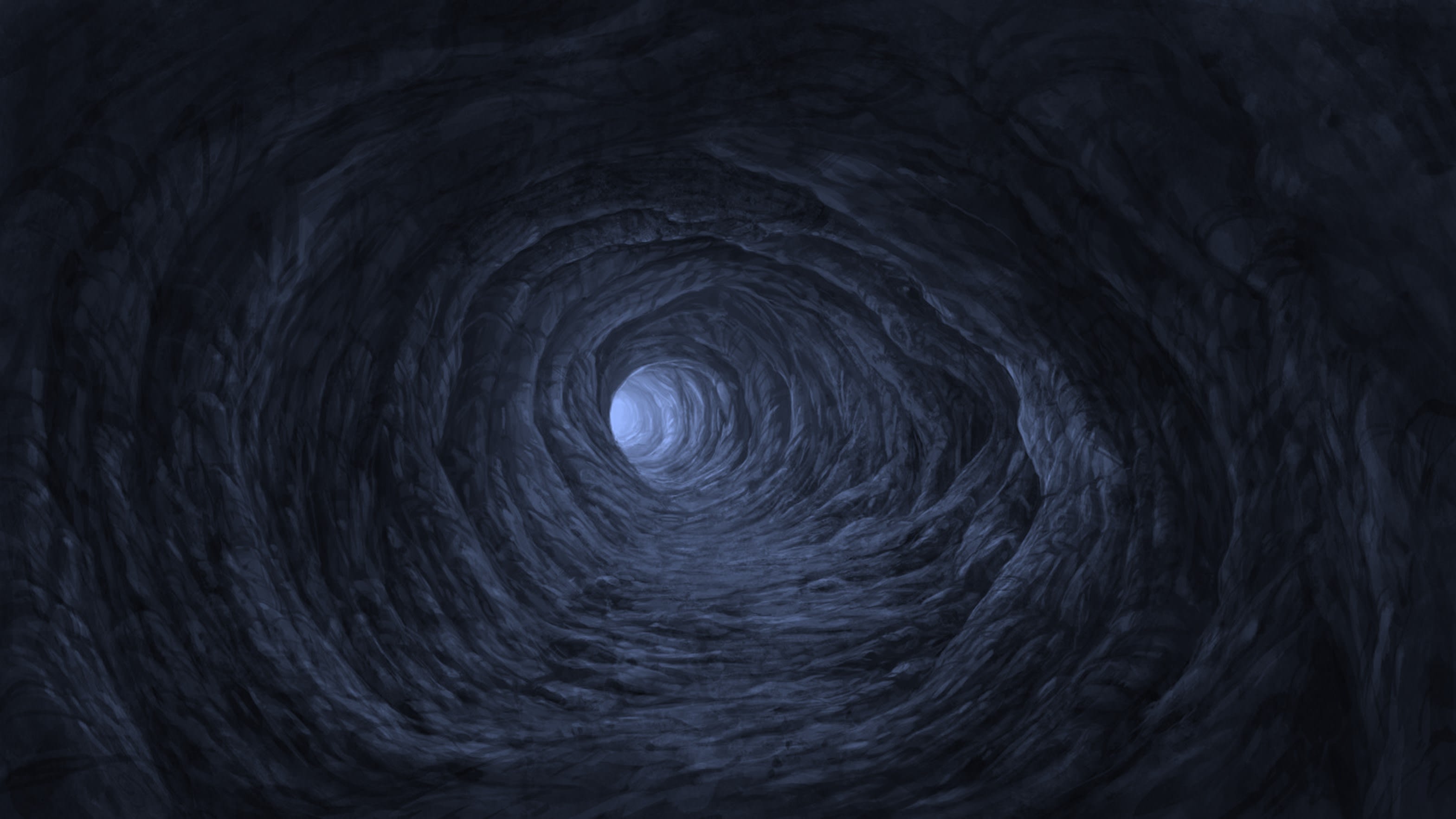 Rights purchased. The womb-cave of the shadows offers comfort and discomfort.