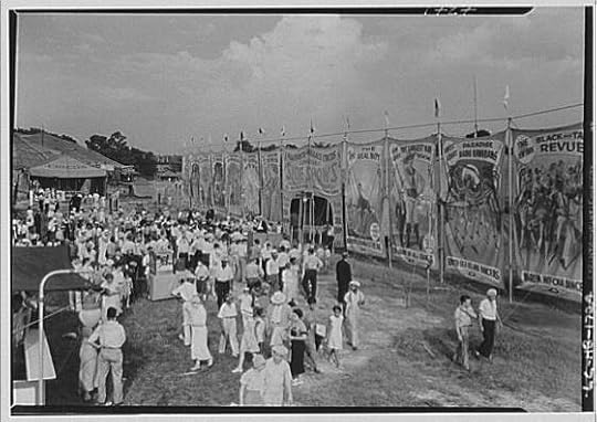 Circus scene. Crowds in front of Hagenbeck and Wallace Circus sideshow tent. Image source: Library of Congress