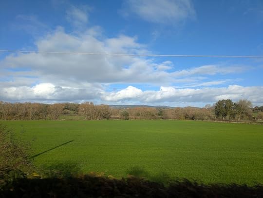And by now I have watched a fair bit of world go by, or at least a fair bit of Britain; I have entered Wales, where the valleys are greener and the sheep are rounder. I have a while to go yet, in sufficient comfort I’m sure. (Well, it is Transport For Wales on my next leg, but at least it’s not Arriva anymore. I still have flashbacks.) I’m not going to be there instantly. I don’t want to be. I’m not at the wheel myself and nor am I crammed into a flying box, with endless admin to do at either end. I’m in a seat, with a tiny table thing, and a book, and a view. The rails hum beneath me; other conversations hum around me. The world passes by me.