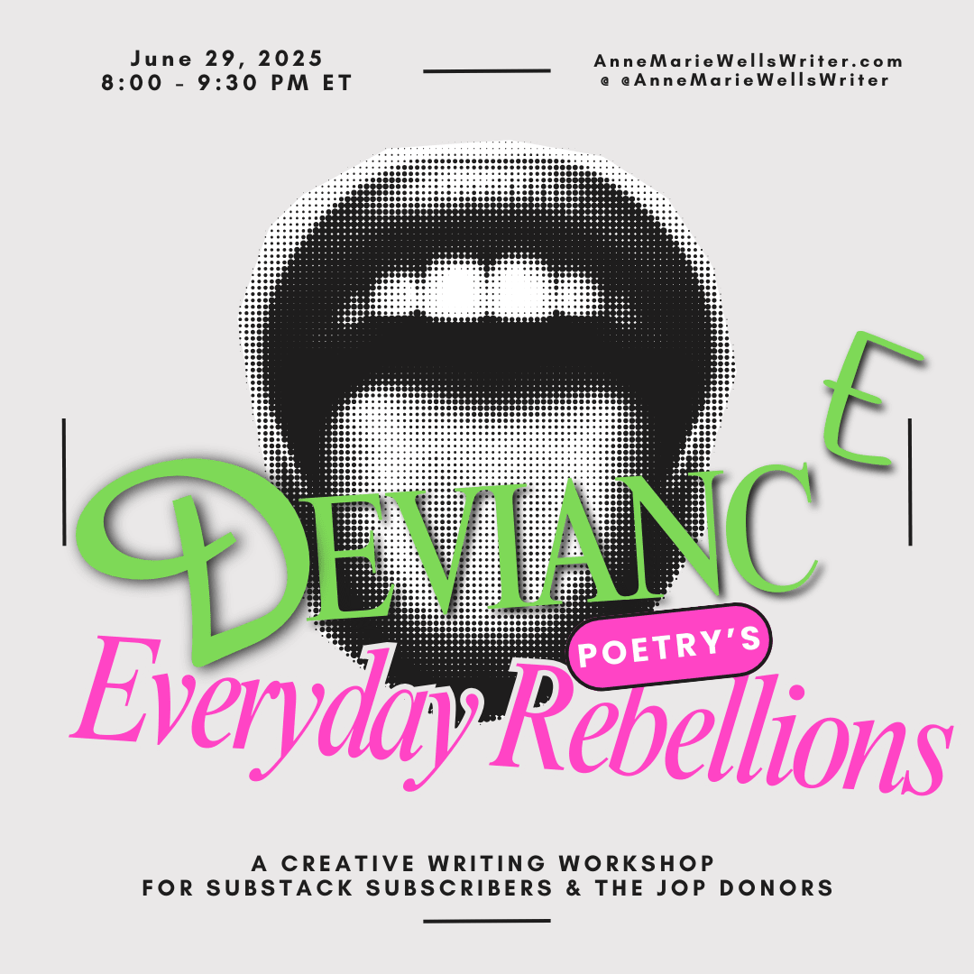 If you’re already a paid subscriber or have donated to The Joy of Poeting, you don’t have to do anything! You’re already in, and you’ll automatically receive a link to join this special event. This workshop will NOT be posted to YouTube. (If you want to double check if you’re on the list or not, send me a message through socials or my website).