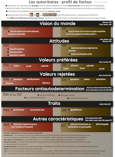 Dans certains cas, il y a même des éléments de ce schéma qui ont des corrélations très connues avec les caractéristiques autoritaires de l’extrêmes droite. Je vous laisse comparer avec ce résumé en image de ce qu’on sait des autoritaires de droite :
