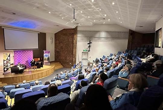 Being interviewed by festival impresario Darryl David at Wordfest, Makhanda