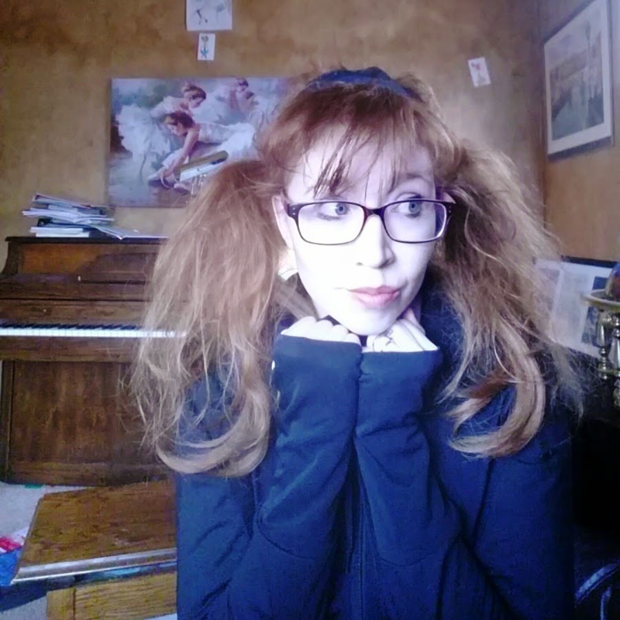 Nerdy scared girl.But then she met a friend who was super nice and had the same writerly aspirations/interests as her. (Wanting to take over the universe by using orbital death rays, inventing cake vending machines, respect for evil overlords who executed rebels… yanno, the usual)