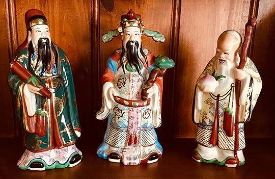 I am getting close to finishing Harriet and the Secret Coins. This has been a two-year project, with much research into life in gold rush times in two local areas and interstate in Victoria. Last year I enjoyed visiting the Lambing Flat museum (Young, NSW), the Temora Goldfields museum and the Central Deborah gold mine in Bendigo. My two characters, Harriet Cooper and Will Taylor, find themselves involved in time-slip adventures whilst on a school excursion to visit the gold mining areas for research on a history project. There has always been a strong Chinese connection with our gold mining past, and these locations are no exception. In 1861, riots broke out at Lambing Flat between European and Chinese miners, who were suspected of finding more gold that the European community. The Lambing Flat museum was a fount of information, and there was even some discrepancy between the information available there and information from a family member who grew up in the area. It's all been a fascinating journey. I have been trying to add to the story line, and had an unexpected bonus right at home. My husband has three Chinese figurines which belonged to his late mother. I was studying them recently and noticed that their appearance was like that of three wise men. I went online to research the characters, and discovered that they are actually deities who represent three aspects of life: status, prosperity and longevity. Lu, the god of status, is represented holding a scroll. He was prayed to with the hope that the prayer's career would prosper. Fu, the god of prosperity, is represented holding an interestingly shaped sceptre, and his robes are red, adorned with dragons, and he wears a jade chain. (Very appropriate, given that my helpful dragon character is red.)He is sometimes depicted with a mountain of gold and silver above his head. Shou, the god of long life, is depicted holding a peach, and is the oldest of the three. Legend has it that he was born old. I have been able to incorporate the three deities into a Chinese grocery store in the Lambing Flat part of the story, sitting on the store owner's counter. Harriet explains to her friend the importance of the gods to the Chinese community. It has all added to my writing, and I love research and discovering new information. I am hoping for a mid-September release of this third novel in the series.