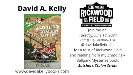 That’s right, join me on Facebook Live @davidakellybooks on Tuesday, June 18th, at 7pm Eastern for a quick reading from Satchel’s Stolen Strike and go on a behind-the-scenes Rickwood Field research tour that I took to write the book!