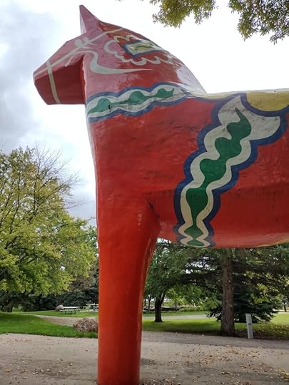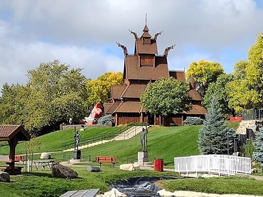 If you’ve never been to Minot, ND (and I hadn’t until going to Høstfest last year), it’s a neat city. Navigating can be a challenge with the Souris River horseshoeing its way through town, and lots of up and down on hills in the river valley. But it’s a lovely city. Last year I made sure to tour the Scandinavian Heritage Park before the festival began, which has a replica of a Norwegian stave church (built entirely of wood, no nails), a Danish windmill, a Swedish Dala Horse, and lots of other Scandinavian attractions.