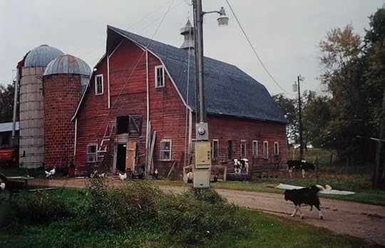 Of course, it wasn’t until I had basically finished the drawing that I dug through old photo albums to find an actual photograph of it. It turns out my memories from age 13 aren’t exactly accurate. I got the silos basically right, at least, and they’re roughly in the correct proportion to the barn. I just vastly misremembered my size (or rather the size of all the doors, windows and openings) in comparison to the size of the building itself.