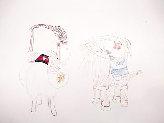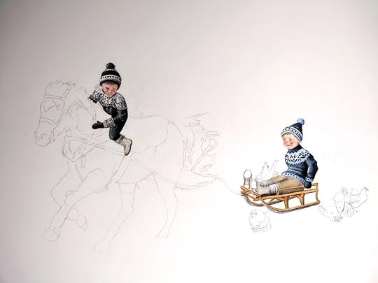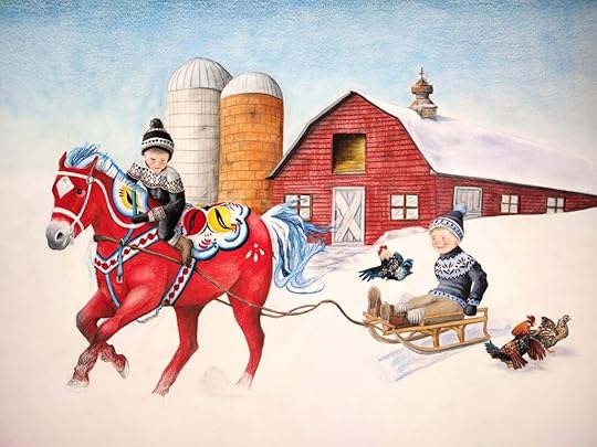 I’ve done several dala horse drawings with little girls, so it was time to do one with the boys. Obviously they would be inclined toward innocent fun that their mother may not be aware of (aka mischief).