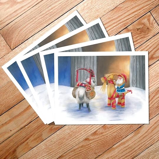 Christmas is coming, and I have For Unto Us (the nativity card) back in stock! After several requests, I printed Get Your Goat, the Tomte and Yule goat duo, for packs this year. I have plans to create a pack of a mix of Tomte cards, but I’ll have to finish a fourth drawing first, so it may be a year or two by the time they’re printed. And the Chickadees are an old favorite that work as Christmas cards or just a nice winter scene.