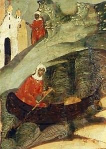 When the day arrived, Zosimas saw Mary appearing on the further bank of the river. She made the sign of the Cross and crossed the Jordan, walking on the water. Having received Holy Communion weeping, she said: “Lord, now lettest Thou Thy servant depart in peace according to Thy word; for mine eyes have seen Thy salvation” (Luke 2:29). She then took leave of Zosimas, asking him to meet her the following year in the place where they had first met.