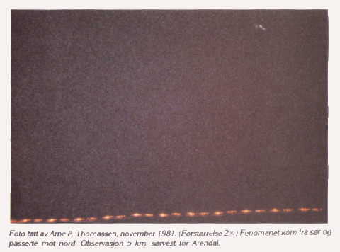 Arendal, Norway, 1981; i.e. not from Hessdalen - but very similar to HD sightings: