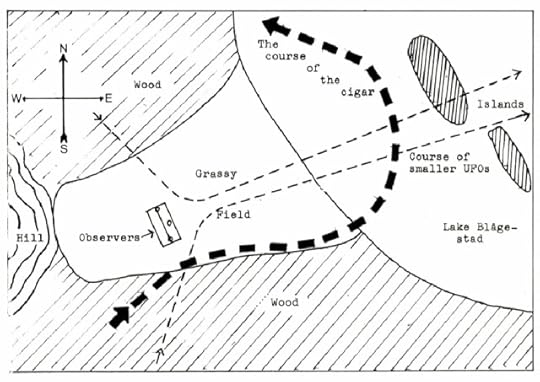 lake and disappeared behind the islands in the northeast. This led to conclude that the three objects were in contact with each other, moving in a united formation. (Source: Nordic UFO newsletter 2 - 82)