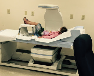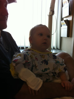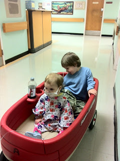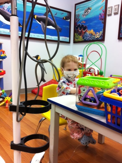 The day started out at 7:30am-- labs, then clinic with the transplant coordinator and the pulmonologist, and then physical therapy with Rebecca. Her pulmonologist shook his head and watched as Wrenn jumped on the table. We all discussed where we were one year ago--facing issue after issue for 3 months straight. They are cancelling her physical therapy sessions because she is all caught up. We all knew at that moment how lucky we were to see her so healthy and thriving. She is one of the lucky ones. After a quick lunch we were off to the Ambulatory Procedure Center for an x-ray and then Wrenn was sedated her for her Bronch, High Resoluation Chest CT & CXR, Ventiliation Perfusion Scan, Echo and Infant Pulmonary Function tests. While she was under they stuck her in four places to find a good vein for an IV. She did great with the sedation and by 6:30pm was resting at home. Tanner spent the entire day at the Sibling Daycare Room so we could focus on Wrenn's busy day.