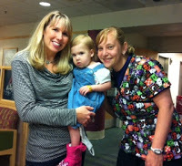Next Wrenn visited Dr. Barbara Warner. She is an amazing NICU doctor and an individual who touched my heart in so many ways. In August, (the month before Wrenn’s transplant) Jason took a four day trip back to Florida to pack up our things with our friends, and the day he left, Dr. Barb (as she preferred to be called) had left several books for Tanner in Wrenn’s room. She wrote a note that said, "I hope these keep you and Tanner company while Jason’s gone this week, Dr. Barb". I couldn’t believe my eyes. I’ve known some pretty great doctors but none that had ever bought me a gift. Dr. Barb was the doctor who kept warning me that Surfactant babies always end up on osciliators and/or on a paralytic near the END while awaiting for new lungs. She prepared me almost every day for what was coming and I could see the pain in her eyes for what our family would go through when those days arrived. I’m sure she thought those books were just a small thing but she has no idea what that BIG gesture meant to me. I frequently email her photos of Wrenn and Tanner and she is impressed how well our little angel has grown. A mother of two, she understood how challenging it was to handle the ups and downs in the NICU. She commended me many times on how I handled the situation under the hardest of conditions. I look forward to sending her many more photos and videos before our next visit to Children’s in April.