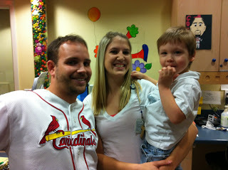 Tanner loved the day care when we first arrived but as the employees had warned us, coming too often burns a child out out and said we might have to find an alternative. We had no options and it always seemed as though he fought us on Wrenn’s worse days. The employees always did their best to get him excited about coming in—they went above and beyond for us and knew how hard it was balancing two children under the stress. I’d like to say Tanner said goodbye but really it was closure for us. I was sincere when I told them that we couldn’t have done the last year without their help and compassion. They were exceptionally attentive to our little boy who was thrown in the fire and lost while we all waited. I have a photo here of two of those guardian angels. Pat (who grew very close to Tanner and is his best bud—and Rita, who always smiled and looked forward to Tanner’s lit-up face as he pushed the doorbell upon entering. The employees made a beautiful scrapbook of Tanner's year and it was the most thoughtful memory any of us could have asked for--a memory of his good times and the people who took care of him while we were in St. Louis. I wish everybody could see how spectacular this memory book is; the photos show Tanner in halloween costumes, doing puzzles, sliding down the slide, interacting with the staff and eating snacks at the kid table. The words inside are just as touching and I cannot thank these wonderful people enough for all they did for Tanner. These are first class people who will never be forgotten! We look forward to seeing you every six months for Wrenn's checkups.
