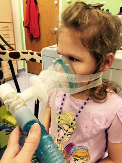 With our upcoming visit to St. Louis, Wrenn will be doing Big Girl Pulmonary Function Tests where she blows into a tube to show off her lung capacity. In order for her to prepare I have her blow a cotton ball across the table several times a week and then blow noise makers and she holds them out for a count of five. For Wrenn it’s all very fun and exciting as if it’s a game. She loves learning new things and so it’s not really work. Wrenn’s an overachiever, of course.