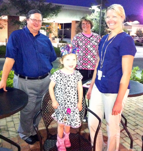 Last year, the night of Wrenn’s transplant, we went with our friend Billy to an Italian Restaurant called Zia’s. We knew it was going to be a long night and were told to prepare for the fast part of the ride. This week our good friend, Joe is visiting from Orlando. He joined us for dinner at Wrenn’s rebirth celebration, which of course took place at Zia’s. It was a wonderful night having us all together. Wrenn had picked out her own dress (white dresses seem to be her favorite) and had fun high-fiving us at the table and showing off her sweet smile.
