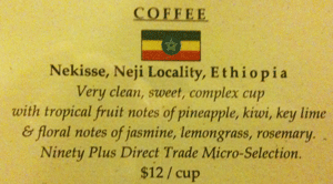 Next is Café Grumpy, where they have a $10,000 machine to brew the clean, sweet, complex $12 cup of coffee from Nekisse, Ethiopia.