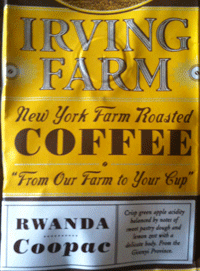Down 7th Avenue to Irving Farm (Go Rwanda!). {Full disclosure: I have a personal connection to Irving, but they're great anyway.} On to Third Rail, rated the best coffee in Manhattan by somebody, and also selling killer Yirgacheffe from the birthplace of coffee. And no, they don't have a bathroom — this is Manhattan, you can pee when you get back to Iowa.