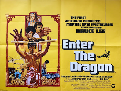 Theatrical realese posterThis 1973 martial arts classic is a must-see for any fan of the genre. Enter the Dragon is also widely credited for establishing the mainstream popularity of martial arts films in the U.S, by merging elements from both Chinese and American cinema.This is not the first movie of Bruce Lee but this is the one that has passed into legend: it was the colossal box office smash of 1973 and the most famous film of that unrivalled martial arts superstar. The film stars Lee as a martial arts specialist who is recruited to investigate a mysterious island controlled by an evil character known as Han.
