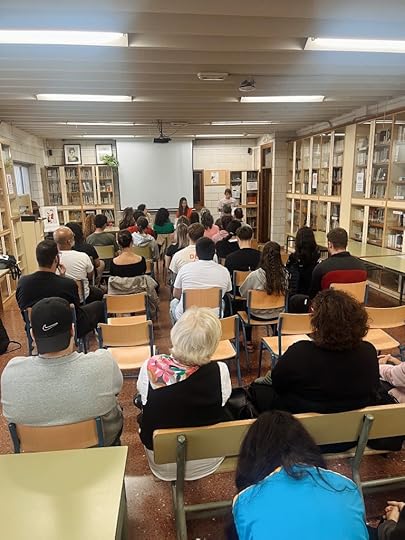 El mes siguiente, en marzo, se publicó mi nuevo libro, Versos de un corazón creciente, y se me abrieron más oportunidades para dar a conocer mi escritura y difundir mi amor por las letras. Por ejemplo, el 28 de marzo di un taller sobre lectoescritura en la biblioteca del IES Arroyo de la Miel (Benalmádena). Fue muy ameno y didáctico, y la ronda final de preguntas fue de lo más productiva.