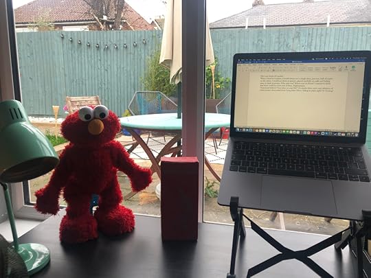 I can’t stop watching Michael Sheen perform Dylan Thomas’ poem, ‘Do not go gentle into that good night’. I watch it and then wait for the silence to put a full stop on those beautiful words, and then I quickly click the replay tab. Again, and again and again. Elmo does not share my love of this video, though. There is jealousy in the studio, and the green-eyed monster has come to call. I used to press Elmo’s foot and wait for him to laugh and tell me a joke if I was stuck or lost. Now, Michael has taken his place, and I must avoid Elmo’s eyes. There is menace there.