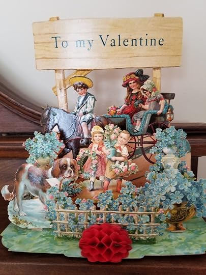Which brings us to today and the overwhelming choices of valentines to buy like the ones pictured above whether contemporary or Victorian in design. The valentine below is a treasure that I have shared in a previous blog. It belonged to my grandmother Emma, and I would guess it dates circa 1910. I set it out every Valentine’s Day.