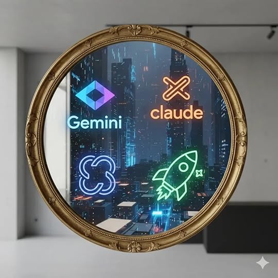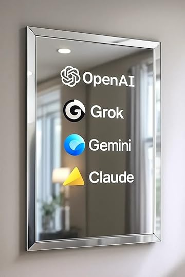 Midjourney to prompt “mirror with Open AI, Grok, Gemini and Claude logos”