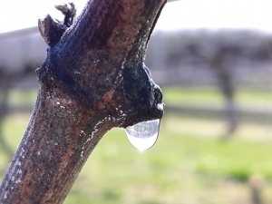 With the root’s water pressure of a warming spring, our grapevines pump out water through the xylem tubes to the buds. But we’ve severed that cane, and the sleeping vine of winter did not seal it off. The cut vine begins to drip water in the coming spring. We call it weeping. If the vigneron stupidly makes big cuts on a vine, it can easily “weep” to death. When done right, this weeping is more tears of joy. The vines are awakening. The new season is beginning. The grapes are coming.