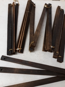 Oak staves. These are simply french oak staves that were not bent by steam and coopered into a water-tight barrel. Our Meritages used these, and we adore the full flavor they give. At this point, the difference between an oak barrel and an oak barrel in a tank is getting fairly small. The cost difference, however, is significant.