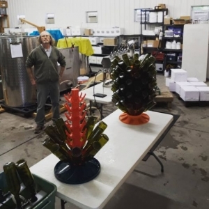 With untold and unfamiliar stress from the pandemic swirling around society, we were forced to build transparent walls and cloth gags to continue our winery business. It is just my wife Wendy and me. There is no staff but ourselves now. Even family is fearful of each other. I could sell four or five of my wine fiction books a week doing our tastings last year. Now that is a memory.