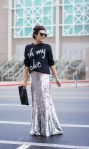 – The sweatshirt and sequin pencil skirt.