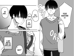 I was like, “I should probably just pick one and pop the other in as a honourable mention…” But then I realized I’m the judge! I am the supreme ruler of this blog! I CAN DO ANYTHING I WANT! So this one’s a tie between two of my absolutely favourite reads from 2021. In My Summer of You we have a gentle, sweet, slightly melancholy slow burn romance with film-buff Wataru and popular hottie Chiharu. Wataru is here fighting over the award with Aisuke Akamatsu from the hilarious, horny, slightly melancholy dark comedy BL Bad Boys, Happy Home.