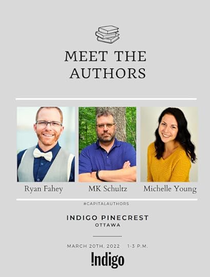 I am super excited to be teaming up with two other local authors for a book event in Ottawa at the Pinecrest Indigo store. This is the first event I have been able to do since covid hit, so needless to say, it is long overdue.