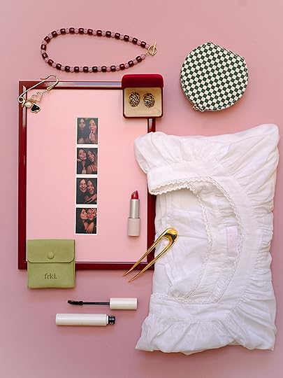 (TBCo. frkl. pin, Mora Frame, Studio Bowe Necklace, Vintage Earrings, Daisy x Shrimps Jewellery Case, Sézane Pin, If Only If Nightie, Jones Road Lipstick, Victoria Beckham Mascara)
