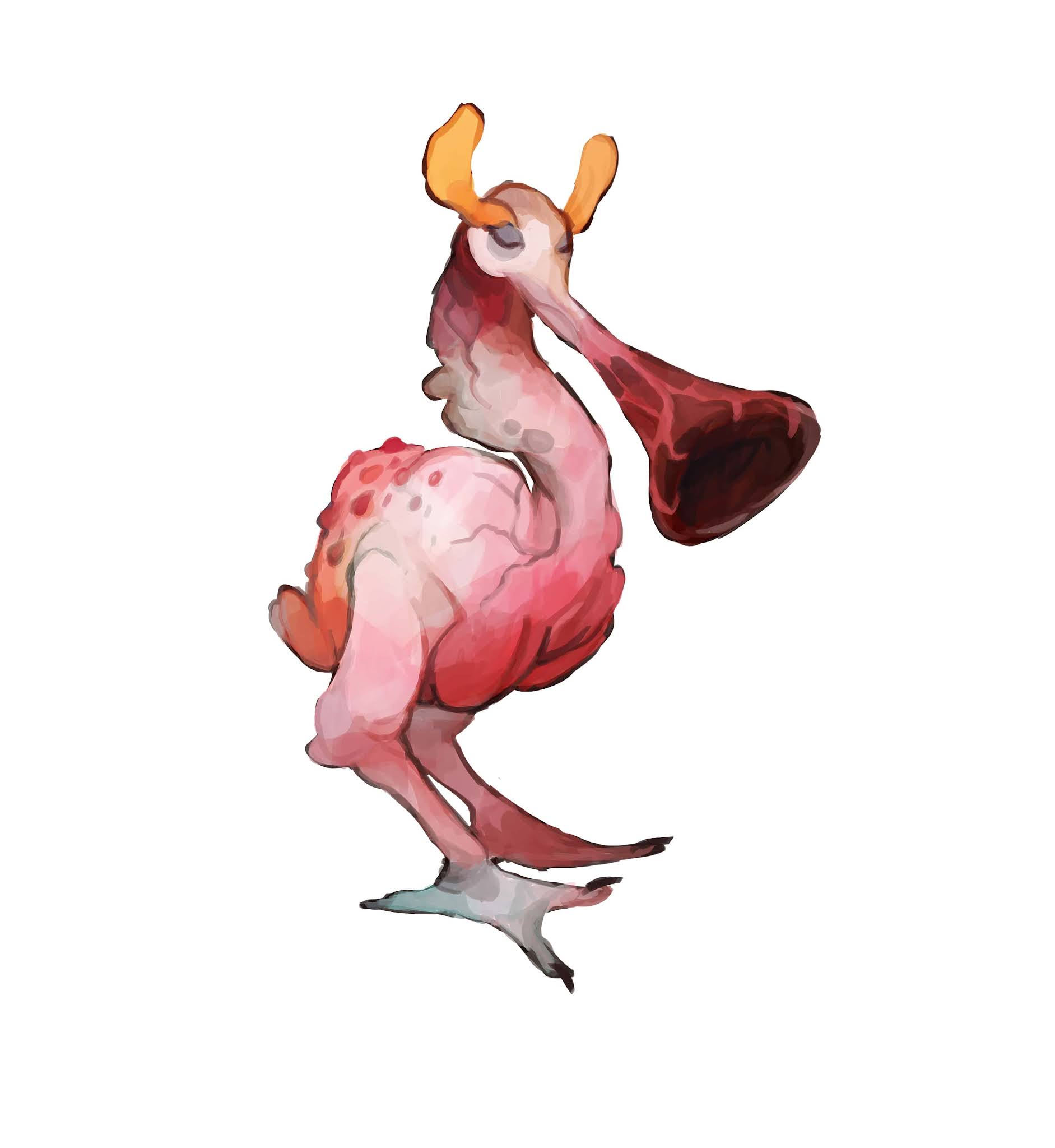Pretty straightforward this one - ancient 'sirens' were a type of singing, Greek bird-thing and modern 'sirens' are a variety of noise-making contraption. Basically I split the difference and drew a cross between a goose and an airhorn: