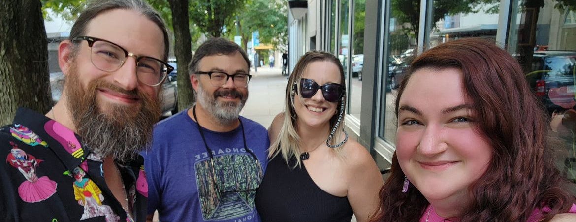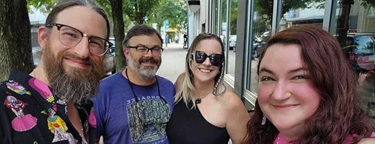 Mary SanGiovanni wasn’t there, as Brian Keene mentioned over and over, so we were treated to his adorably careful man-handwriting. For the third week in a row, I sold books—this time, all the way up in Pennsylvania at Brian Keene’s Vortex Books and Comics, where I had a signing event with Sonora Taylor, R.J. Joseph, and Somer Canon. Sonora just released Errant Roots, a fabulous novella in the “Selected Papers from the Consortium for the Study of Anomalous Phenomenon” novella series from Raw Dog Screaming Press, which Rhonda (R.J.) is editing; the next release in the series is my novella, Blood Cypress. Rhonda came all the way up from San Antonio to sign her book, Hell Hath No Sorrow Like a Woman Haunted, and RDSP publisher Jennifer Barnes showed up with John Edward Lawson—two of my favorite people in horror. Add Brian Keene, and it was like an episode of Horror All-Stars.