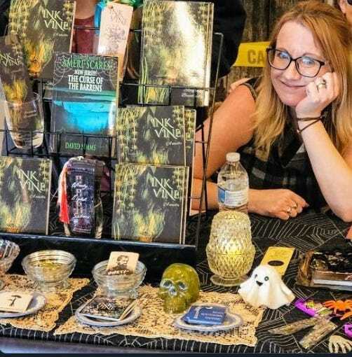 For the past two weekends, I’ve been lucky enough to sell books with one of my favorite people in horror, the talented and kind David Simms (check out my favorite book of his, Fear the Reaper, right here—it’s a fictionalized version of the history of an asylum in Staunton, VA, run by the man who inspired Hitler. It’s a hard read, but a well-done and important one). We hit the Fredricksburg Book Festival on October 12th, and the Queen City Word Fest in Staunton on October 19th. On Sunday, I collapsed with a rewatch of The Fall of the House of Usher, a cat, and plans to possibly reemerge around Wednesday.