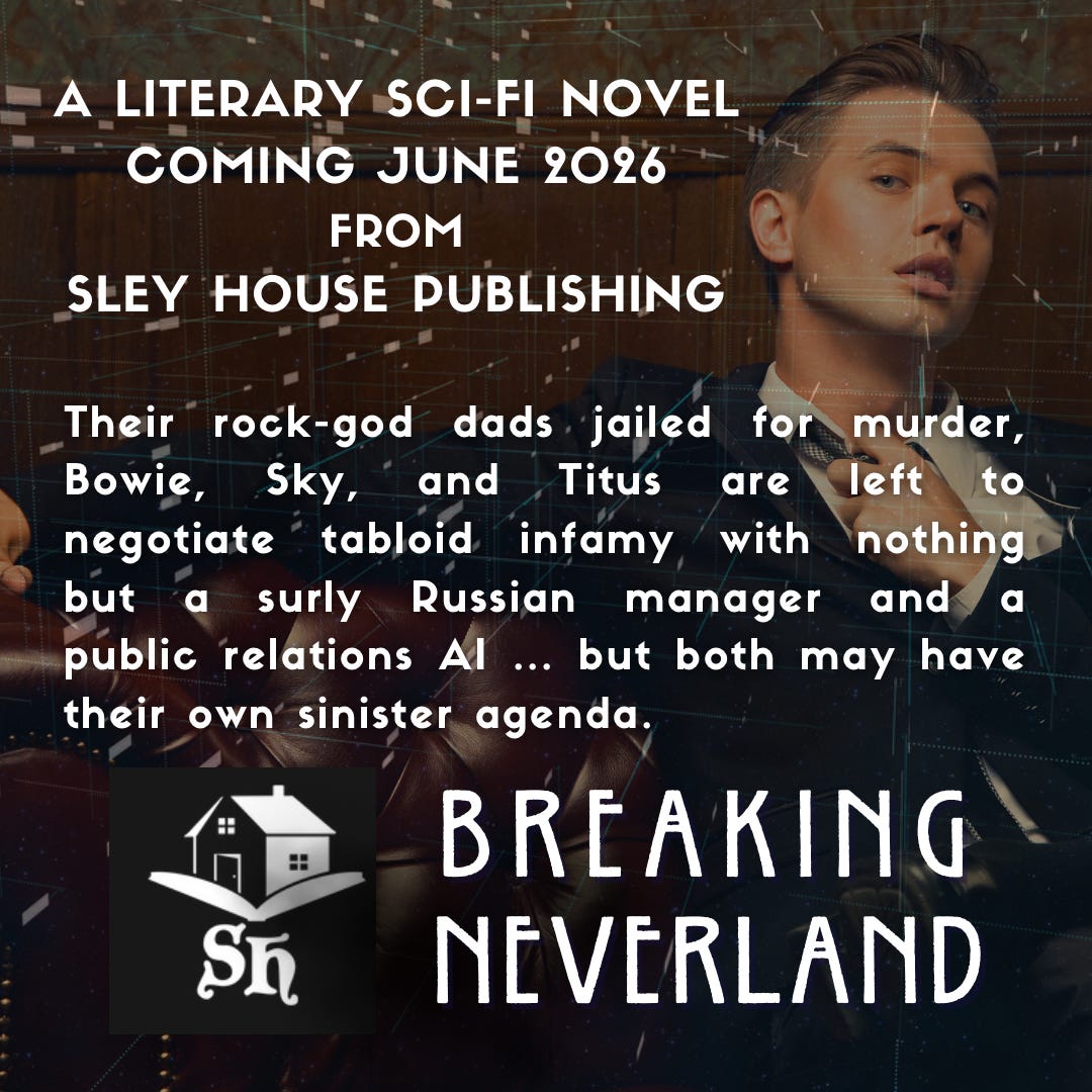 I also signed a deal with Sley House Publishing for Breaking Neverland, a science fiction novel set in the same world as my three-story arc in Hyphenpunk (you can read the stories here, here, and here). I’m thrilled to be working with Jeremy Billingsley and the rest of the Sley House crew.